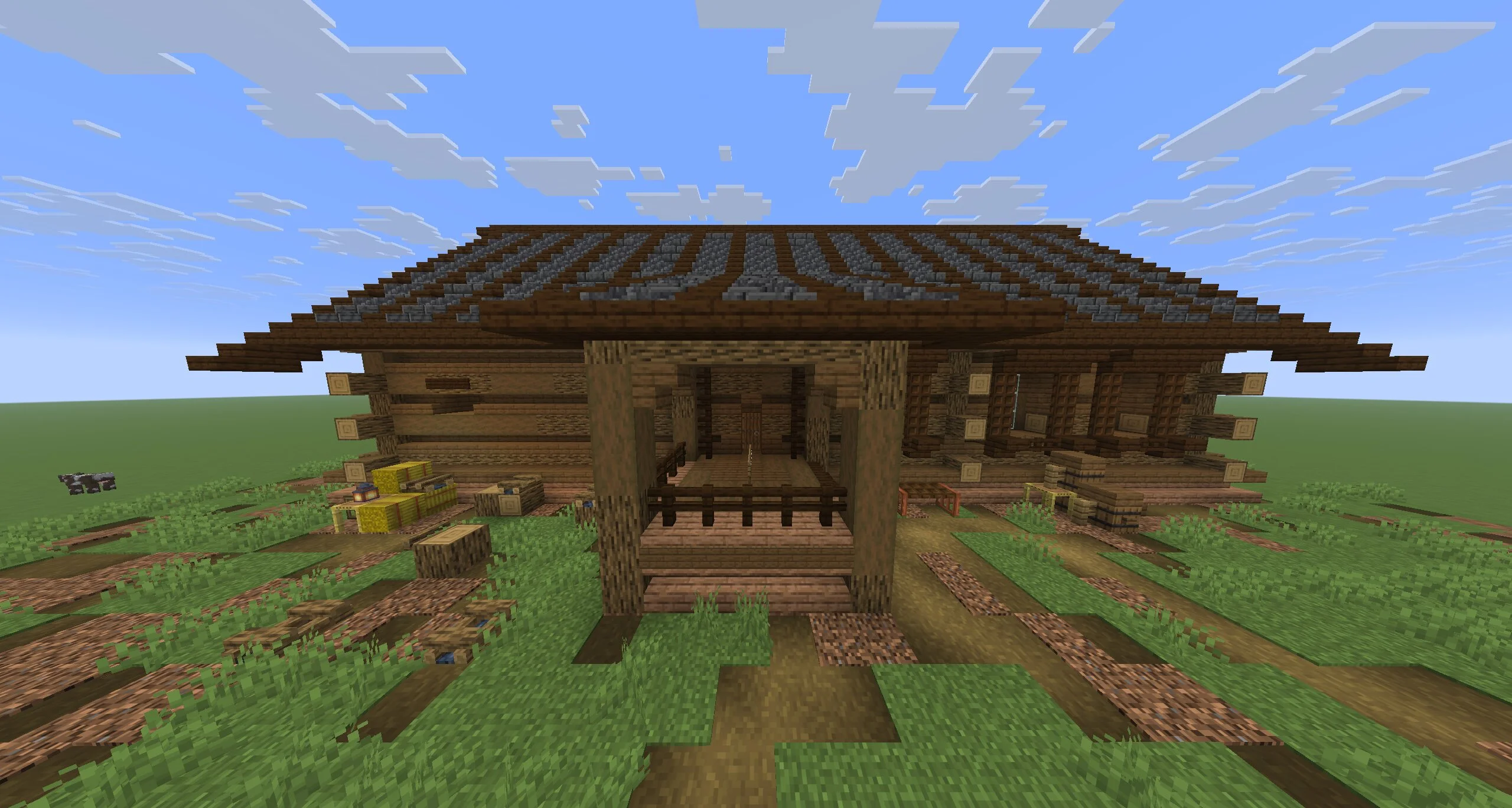 На карте Дачи для Minecraft Java участок разделён на несколько функциональных зон. Здесь есть огород, теплица и хозяйственные постройки. Основное внимание уделено работе с землёй и уходу за растениями.