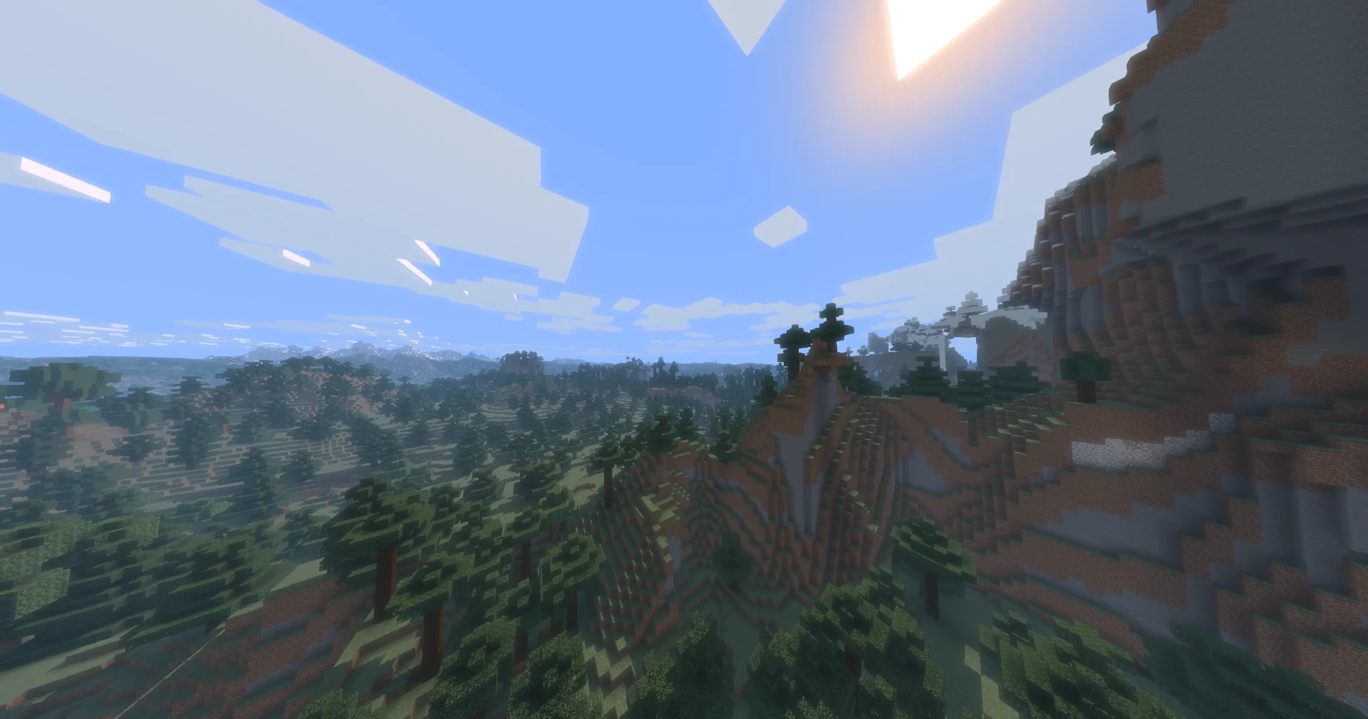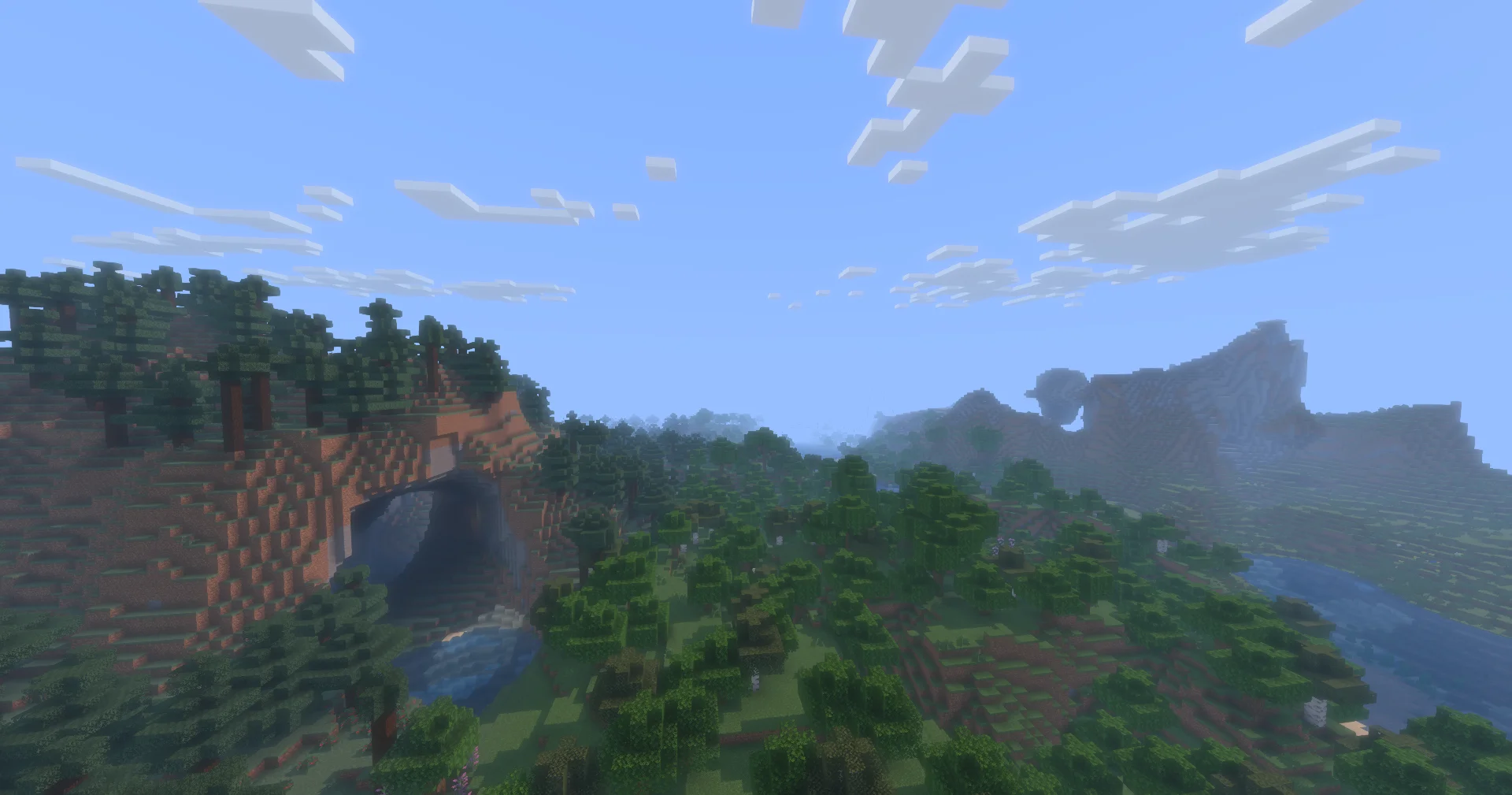 Именно в природе блочный шейдер раскрывает весь свой потенциал. Разработчики применили специальный туман, который зависит от высоты. Он стелется по поверхностям в разных биомах и создает видимость бесконечного горизонта, добавляя миру объема и масштаба.