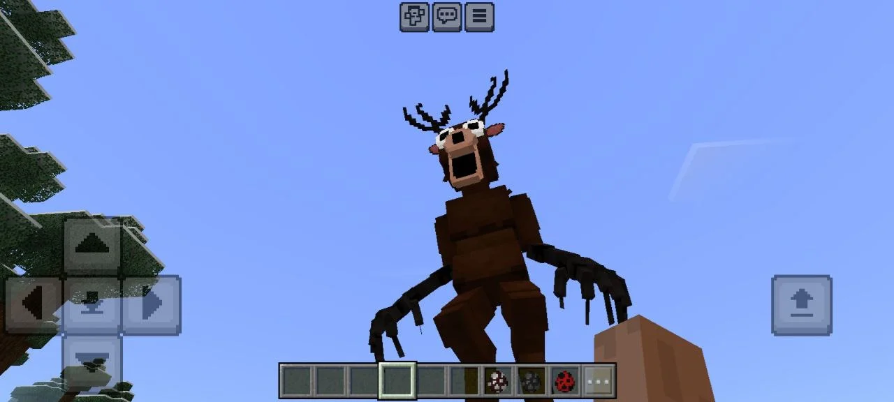 Главный персонаж, которого добавляет мод 99 night forest - олень с выпученными глазами, который одним своим видом может напугать любого игрока. Поведение моба очень агрессивно.