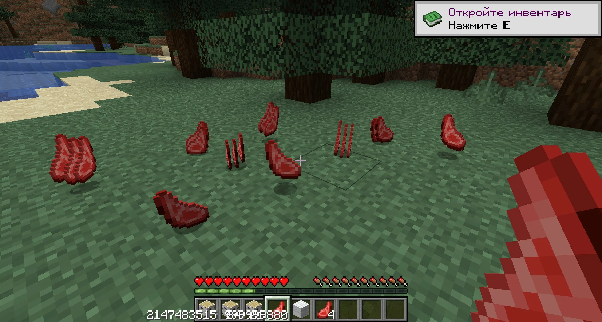 Главное в клиенте на дюп на Minecraft Java — не переборщить. Ведь если сделать нескольким предметам подряд миллионы копий, цифры в интерфейсе в панели быстрого доступа перемешаются и играть будет не комфортно. Да и не будет ситуации, в которой может понадобиться такое количество материалов.