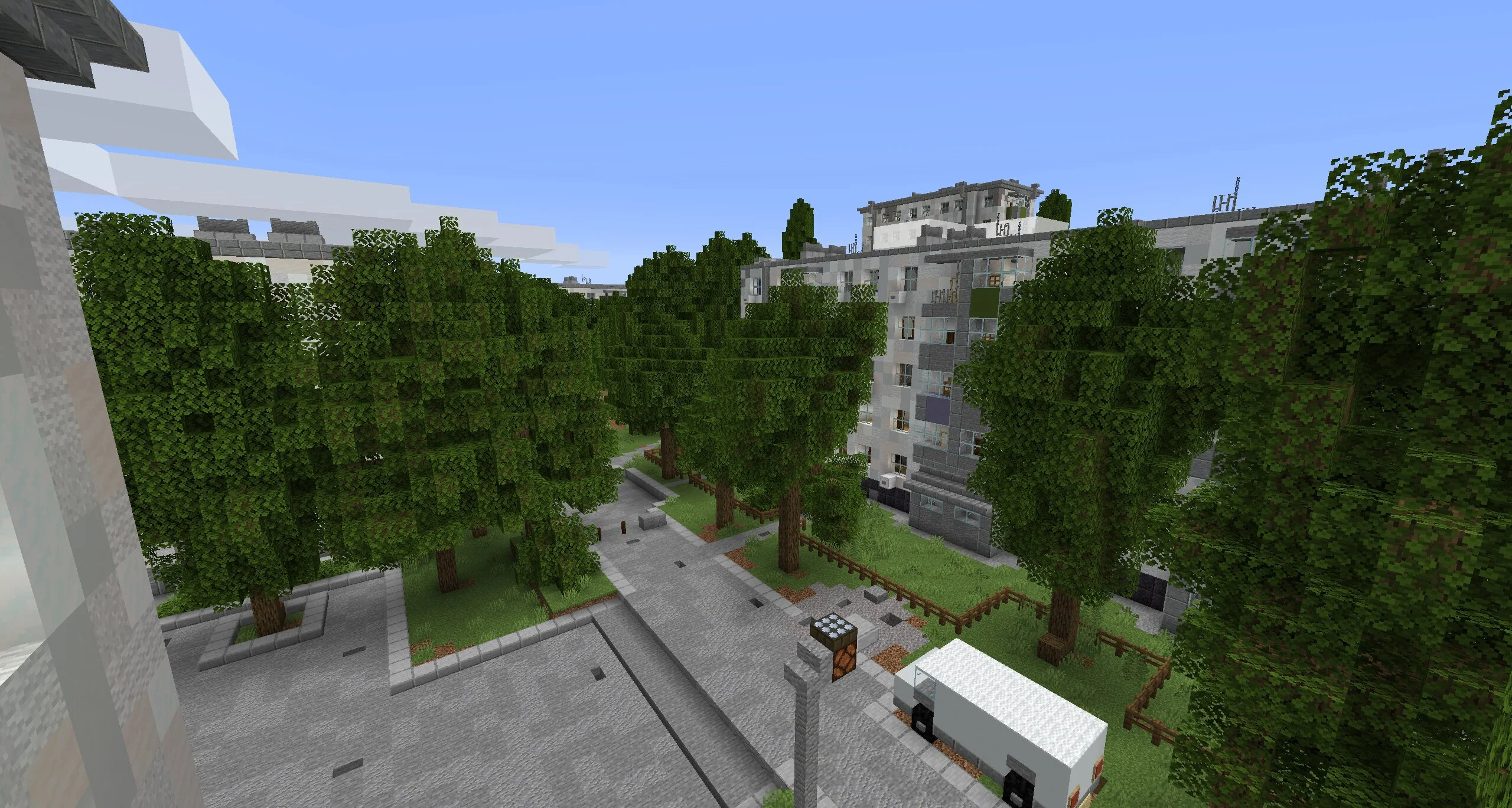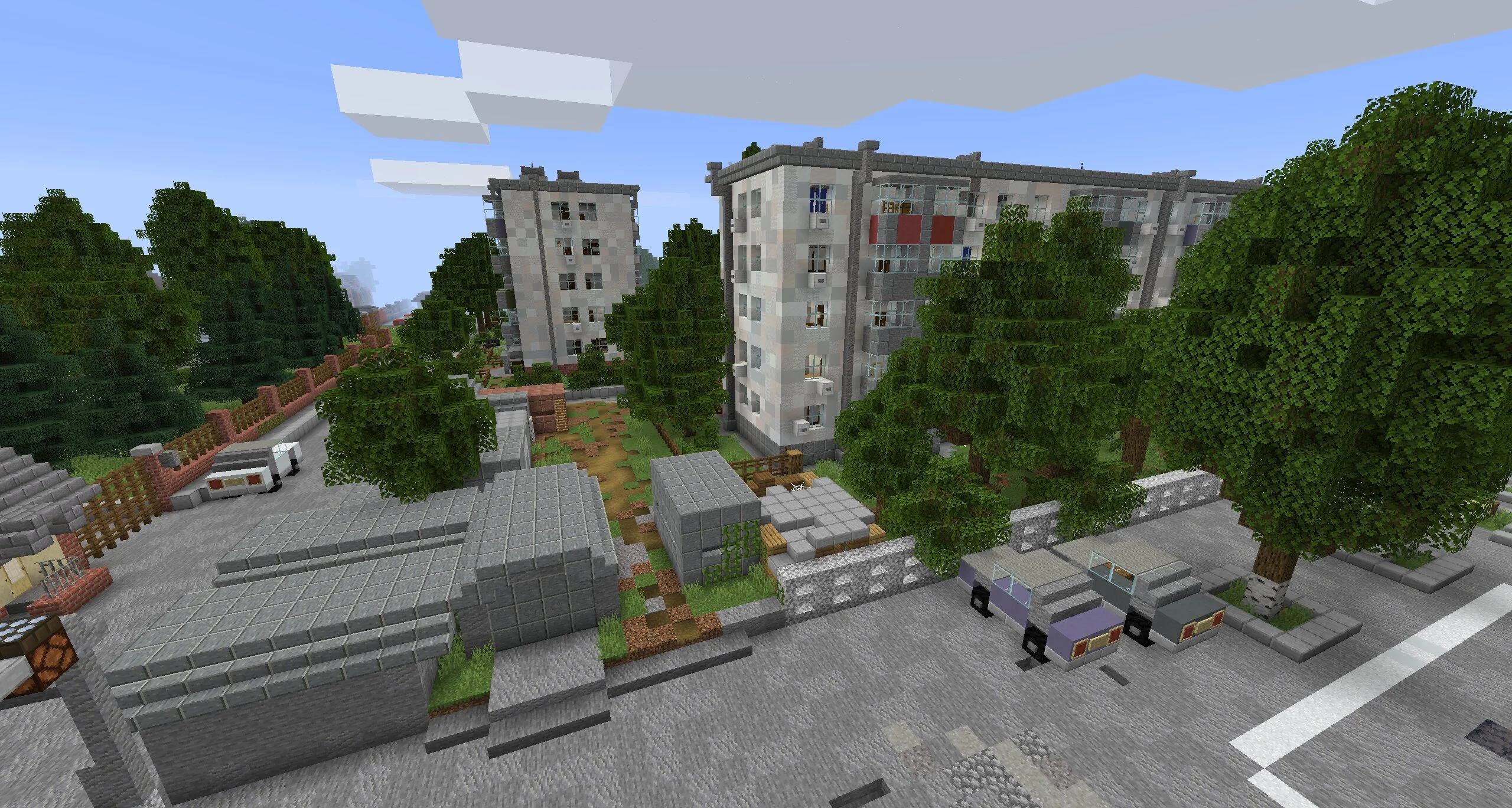 В гаражах нет места, это просто муляжи. Но атмосфера возле них просто невероятная. Эта локация отлично подходит для записи забавных видео или просто ролеплея с товарищами. Автор уделил внимание даже мелким деталям. Например, возле окон висят кондиционеры. А рядом с деревьями обязательно высажены ряды аккуратных кустов.