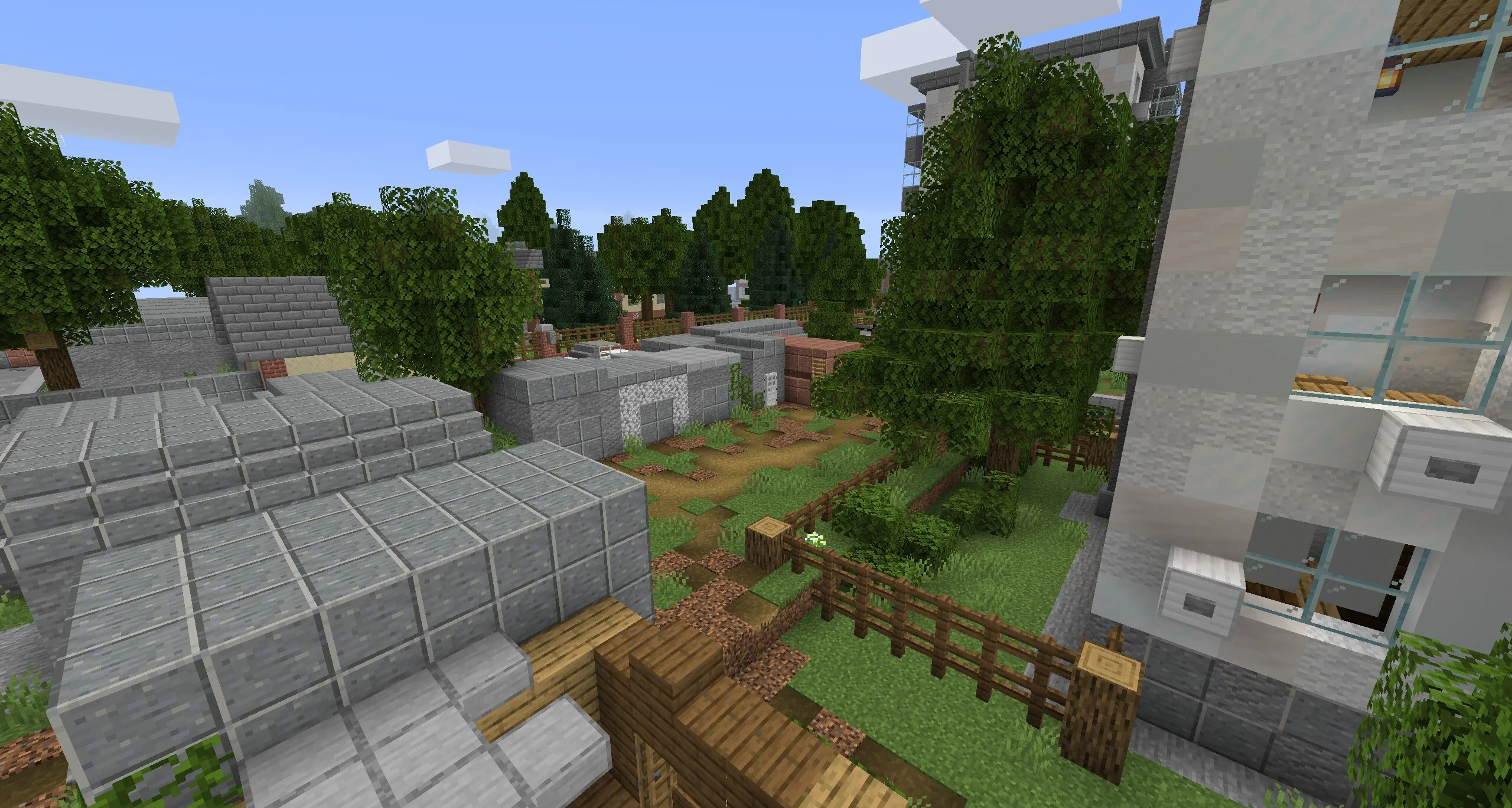 Зелени на карте Блэк Раша на Майнкрафт Ява очень много. Повсюду растут высокие деревья. Каждое из них можно срубить, чтобы получить материалы для выживания. Вокруг города и вовсе огромный лес, в котором водятся звери и встречаются монстры.