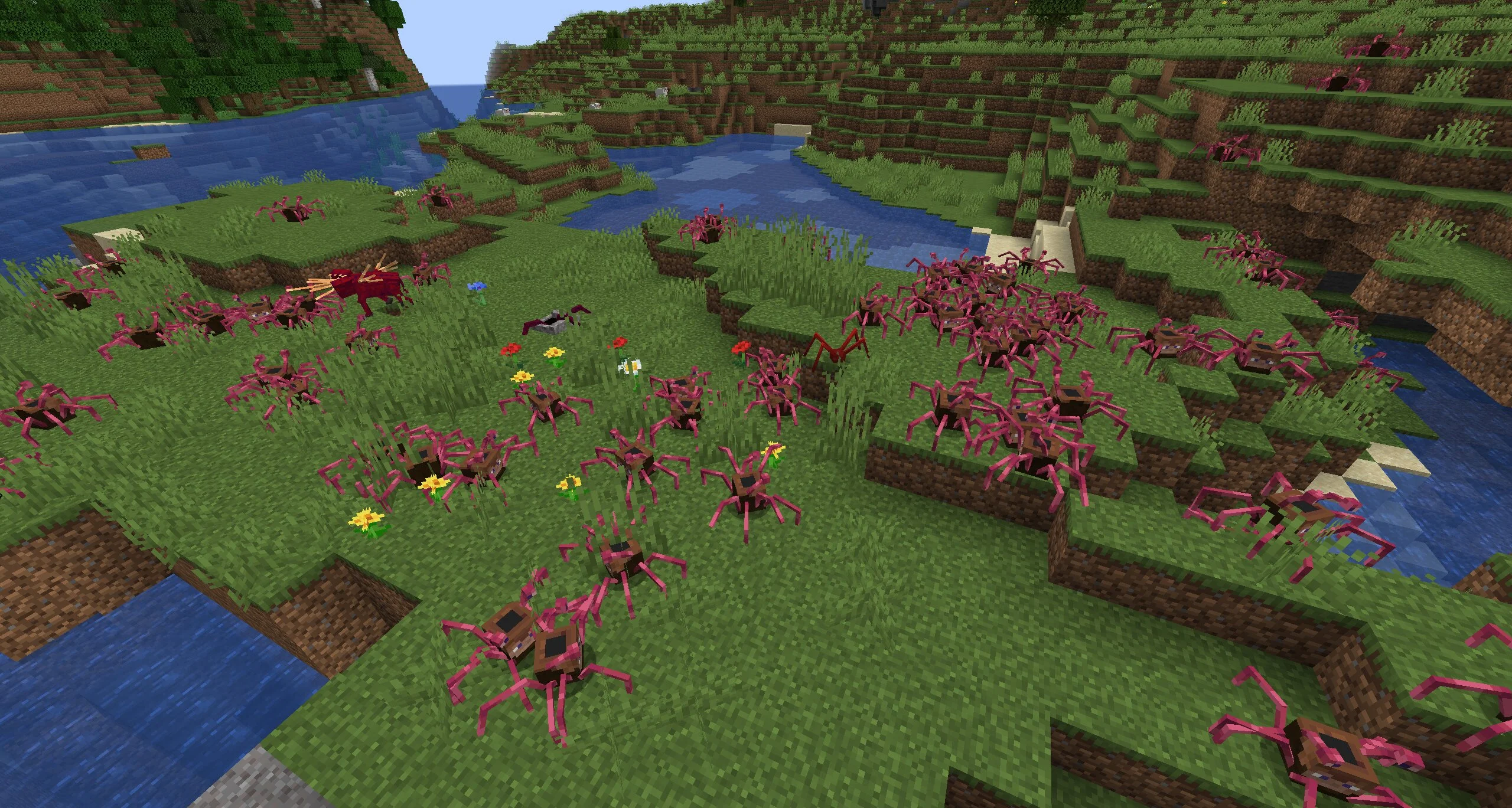 Паукообразные существа заполонят кубический мир сразу же после загрузки карты. Но они не будут встречаться только в базовом виде. Многие уже захватят местных жителей и животных. Поэтому Стив столкнется с очень опасными монстрами. Можно скачать и другие страшные моды на Майнкрафт на ПК.