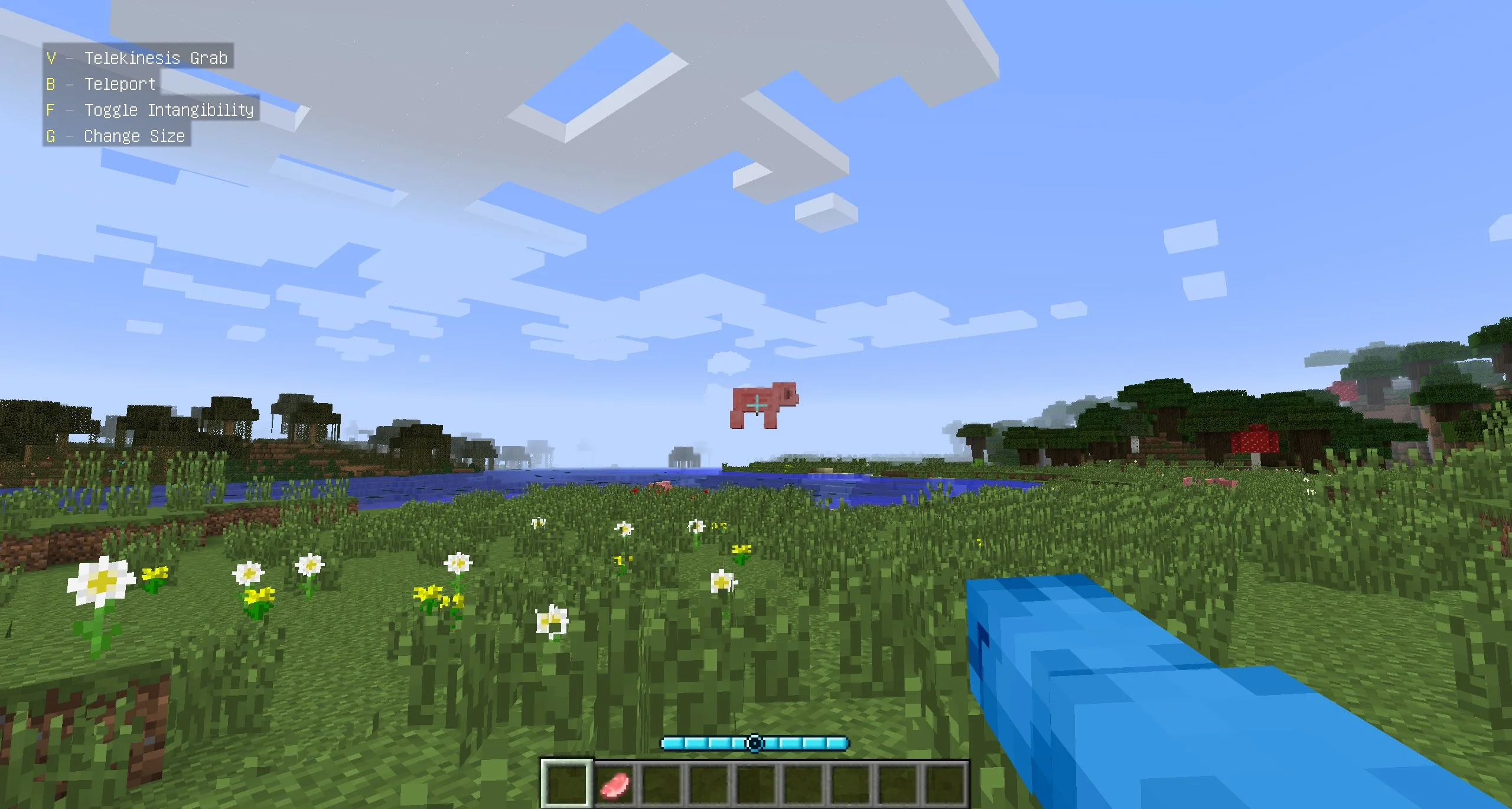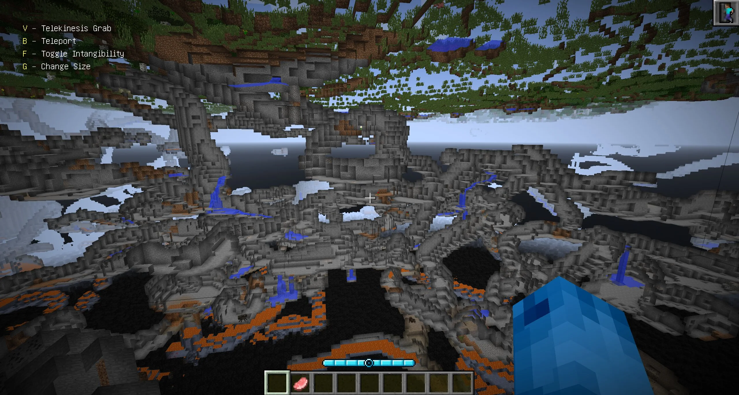 Игроки смогут превратиться в синего красавца, способного управлять не только энергией окружающего мира, но и самой материей. Он обладает телекинезом, может пускать силовые лучи и вырастать до облаков. Далеко не все моды на Майнкрафт Ява позволяют выживать от лица настолько мощного персонажа.