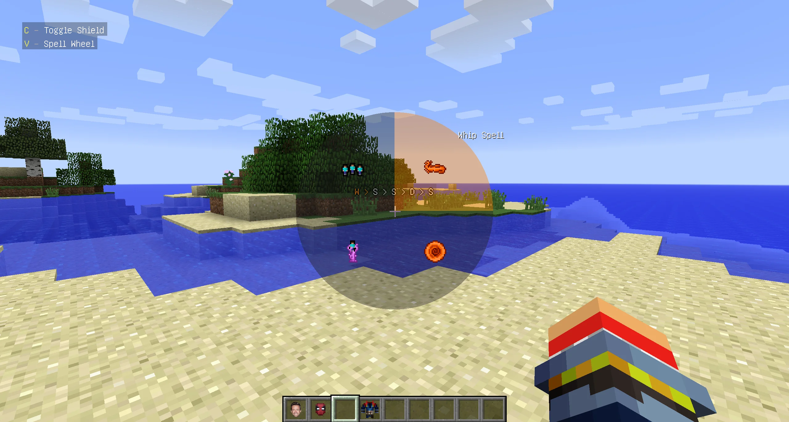 Установив этот мод на доктора Стрэнджа для Minecraft на ПК, игроки должны будут открыть инвентарь и достать оттуда основную часть костюма, штаны и ботинки. Надев их, они увидят справа сверху на экране информацию о горячих клавишах. Они отвечают за активацию способностей.