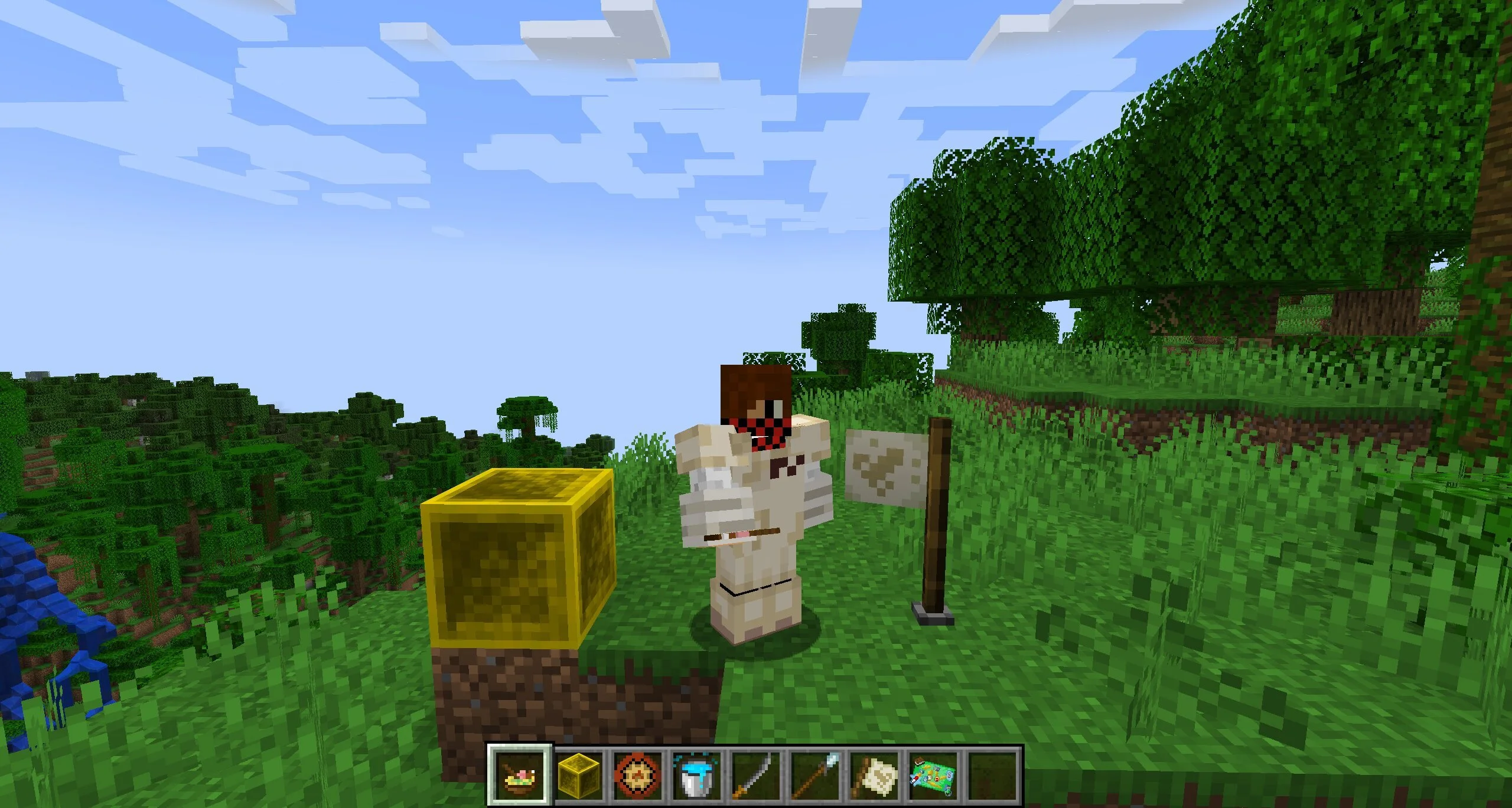 К примеру, здесь есть шлем в виде арбуза, который действует примерно так же, как вырезанная тыква. Но у него есть один секрет, который предстоит разгадать игрокам. Также здесь несколько новых рецептов крафта. Можно превращать каменные статуи в живых существ, как и в манге.