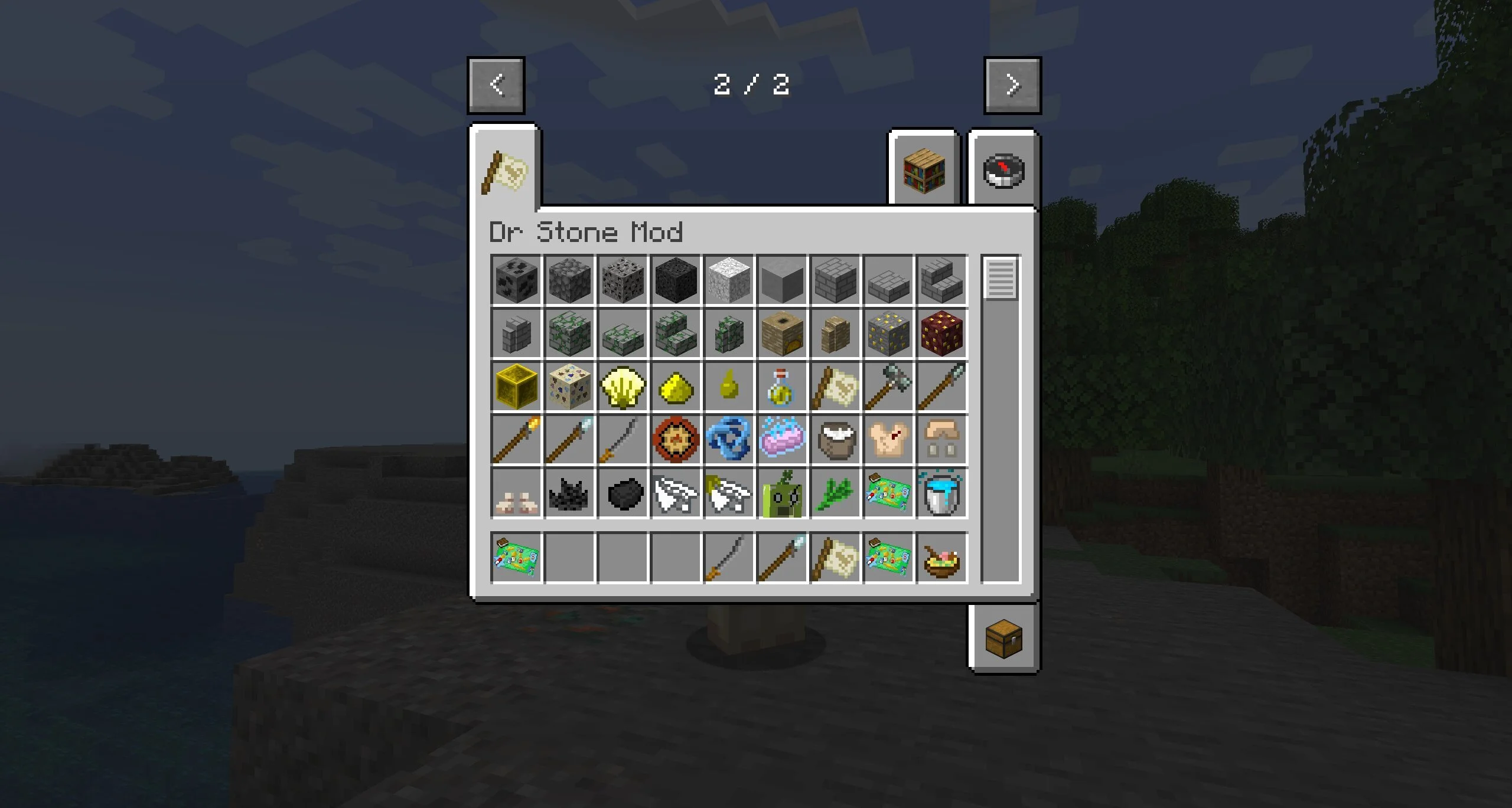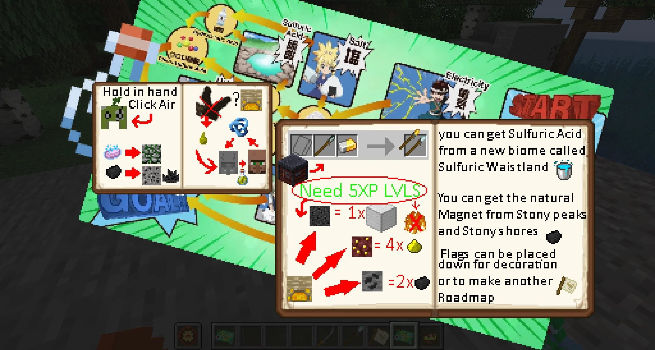 Первое, что игроки заметят у себя в инвентаре в моде на доктора Стоуна в Minecraft на ПК — красочная карта. Она вдохновлена аналогичным артефактом из аниме. На ней герой может увидеть множество полезных обозначений. Автор добавил на карту рецепты и объяснения работы некоторых новых предметов.