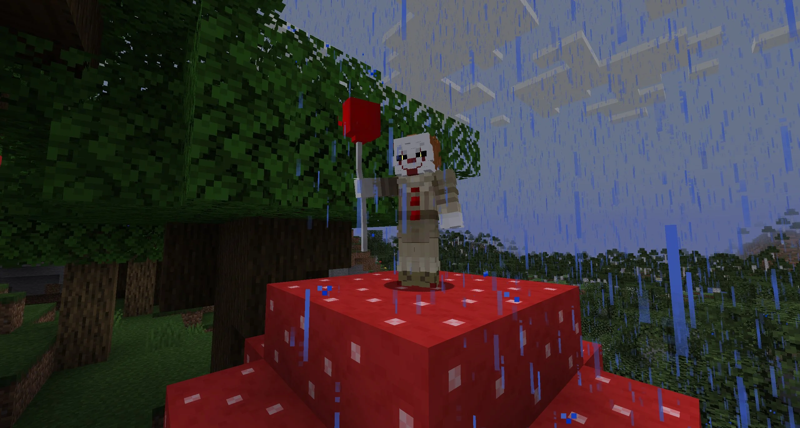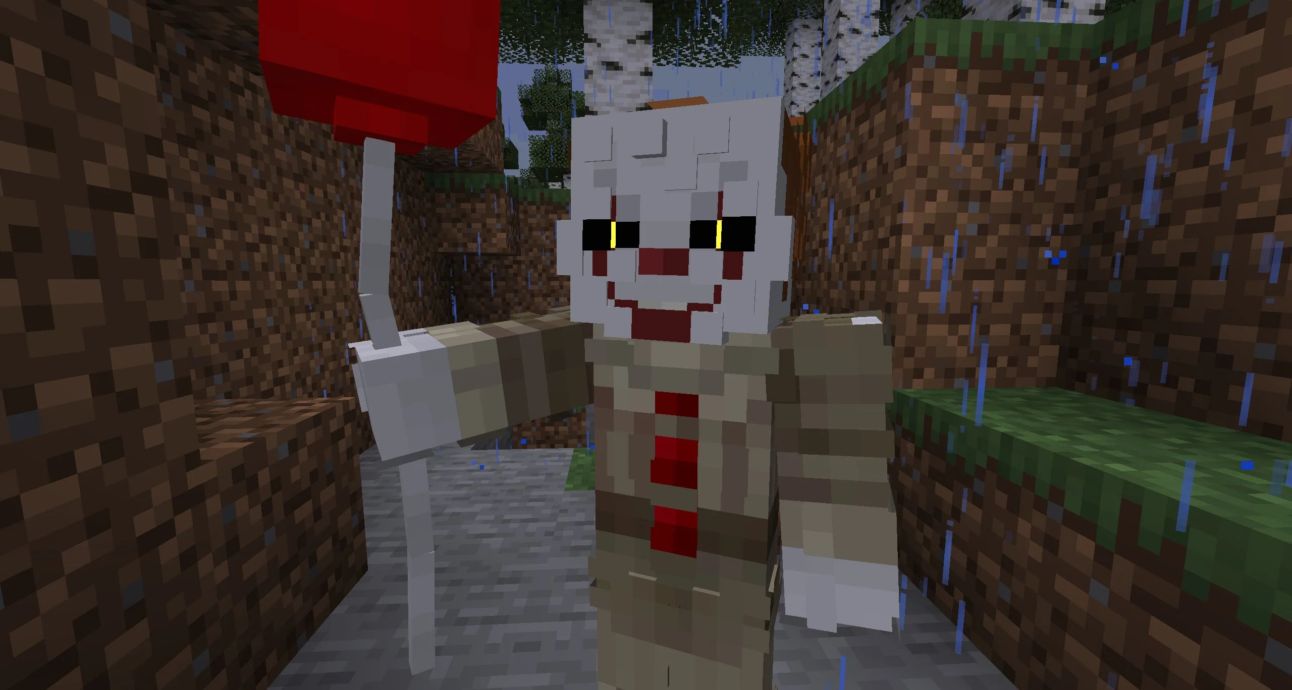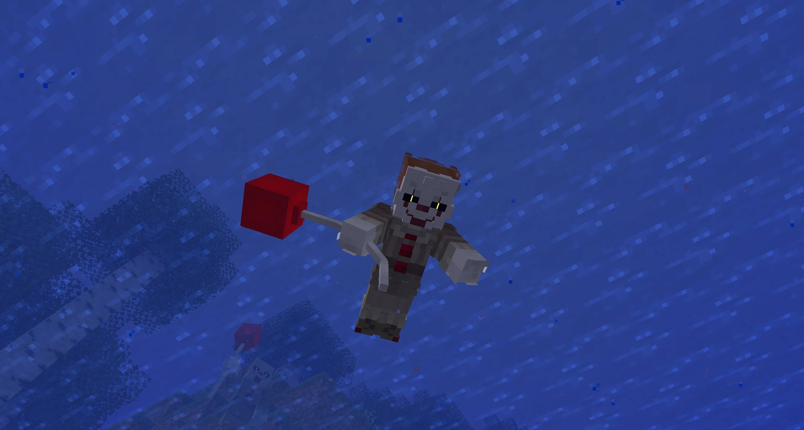 Но в кубическом мире у Пеннивайза только одна задача — уничтожить Стива любыми методами. Как только герой встретит монстра, тот начнет свою охоту. Интересно, что он не остановится даже после гибели Стива.