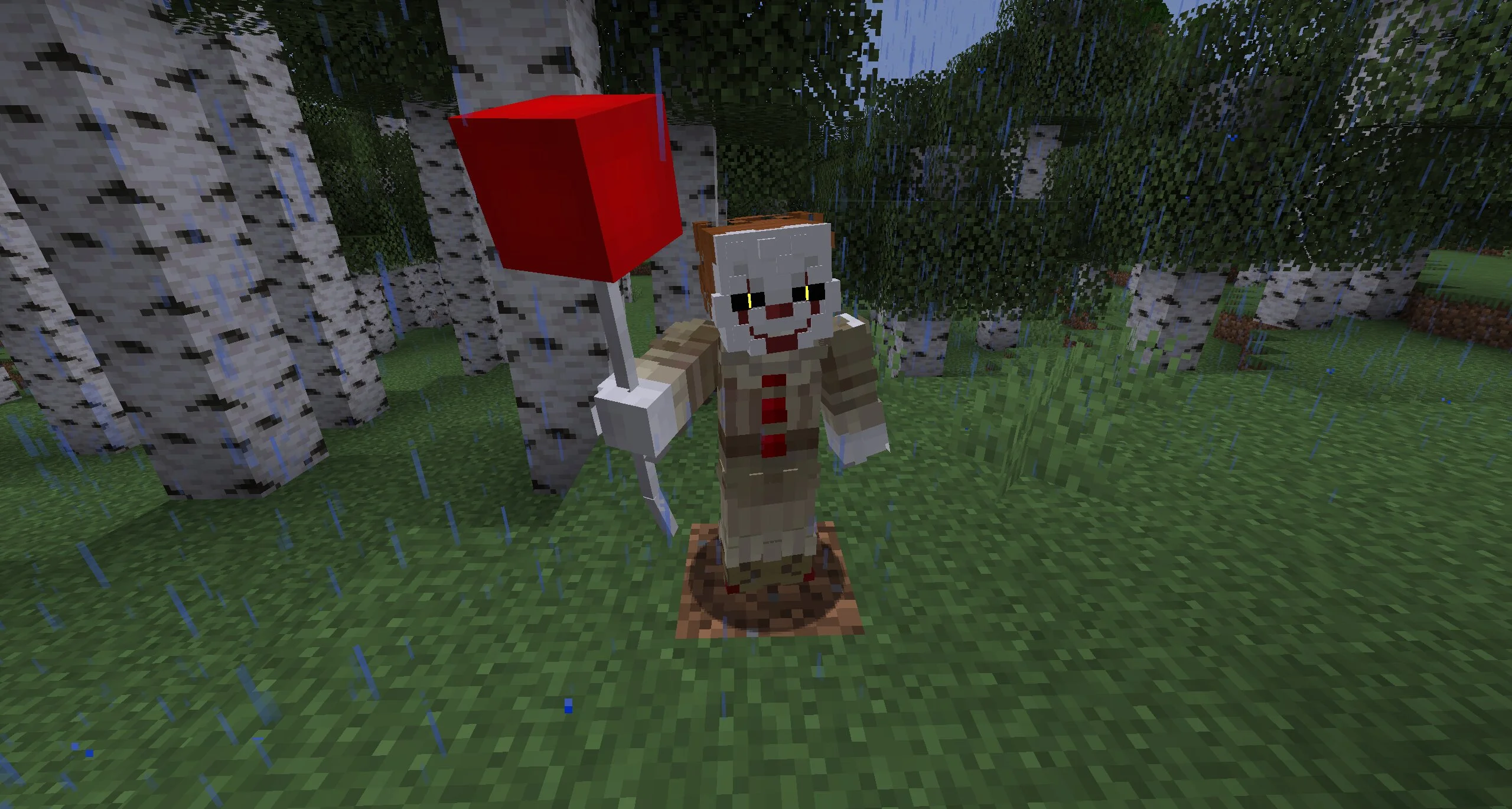 Здесь всего лишь один новый объект — сам клоун. Он обладает настолько фантастическими силами, что ему и не требуются вспомогательные предметы и союзники. Одно такое существо способно превратить прохождение в кошмар. Это один из лучших модов для Minecraft на ПК для любителей ужасов!