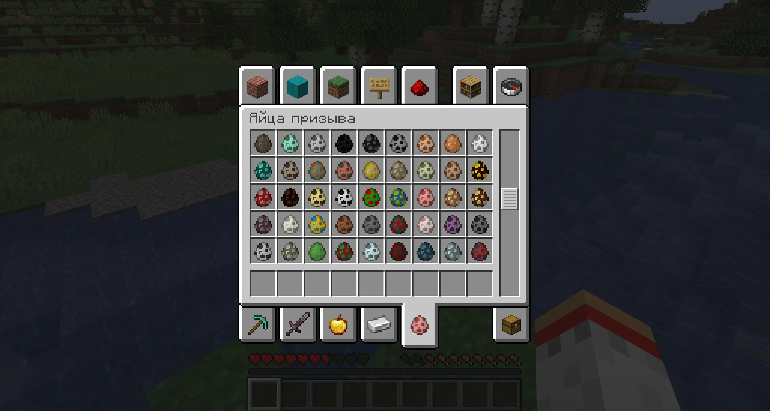 Но есть еще более простой и удобный вариант получить все необходимое — чит на предметы для Майнкрафт Ява, который автоматически включает креативный инвентарь в режиме выживания. Не придется ничего прописывать, отдельно включать, настраивать.