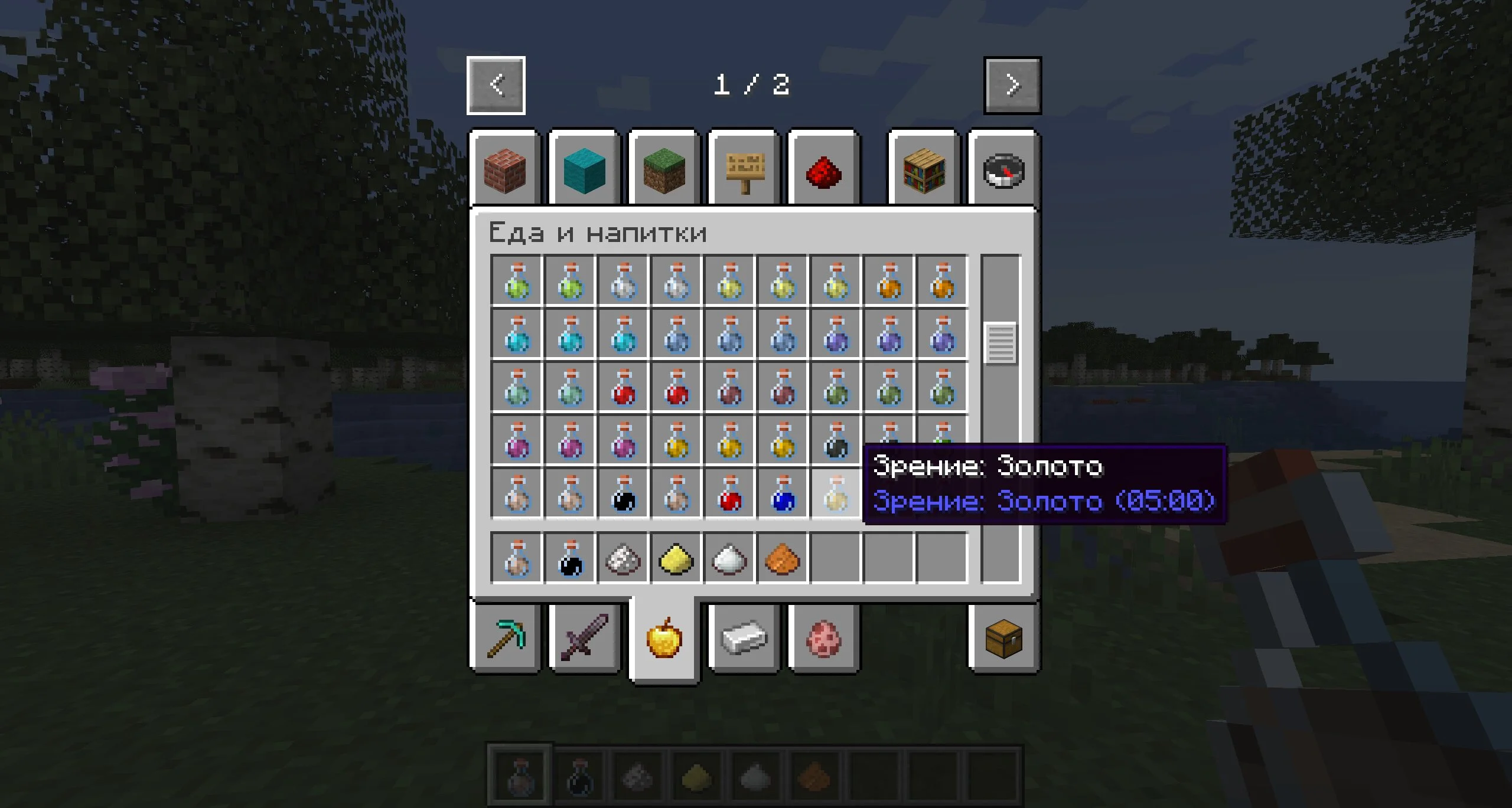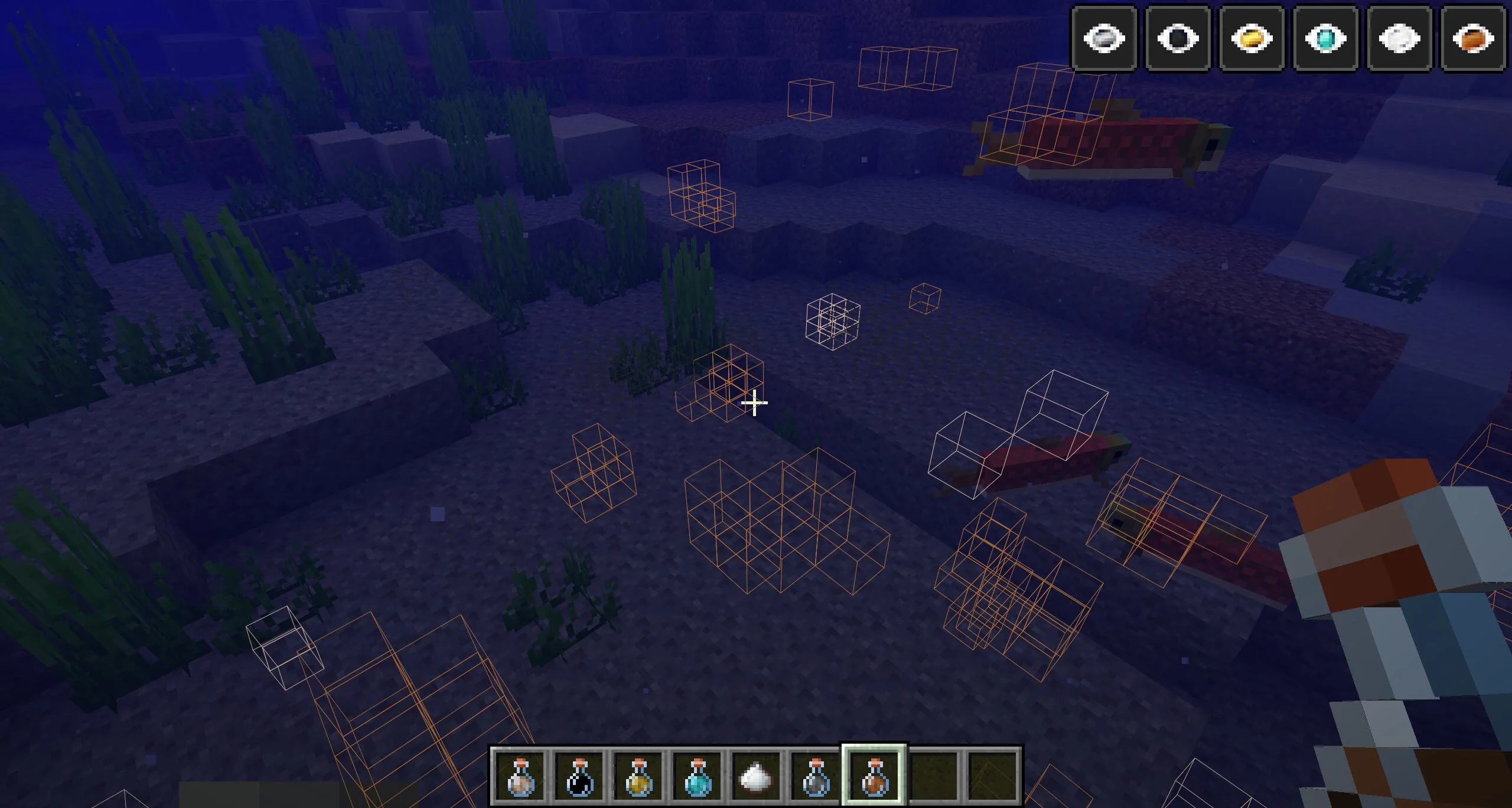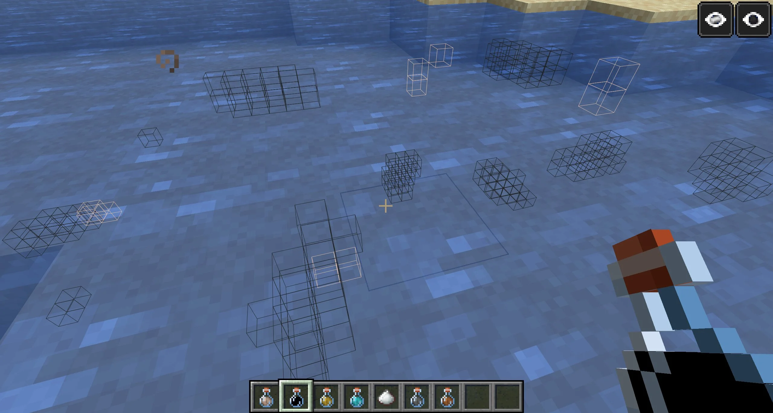 Зелья в чите на блоки на Minecraft Java могут накладываться друг на друга. То есть, можно выпить сразу несколько зелий и отправиться в пещеры, где самый лучший обзор сквозь стены. Доступны варианты напитков для всех материалов, которые добываются киркой из блоков.