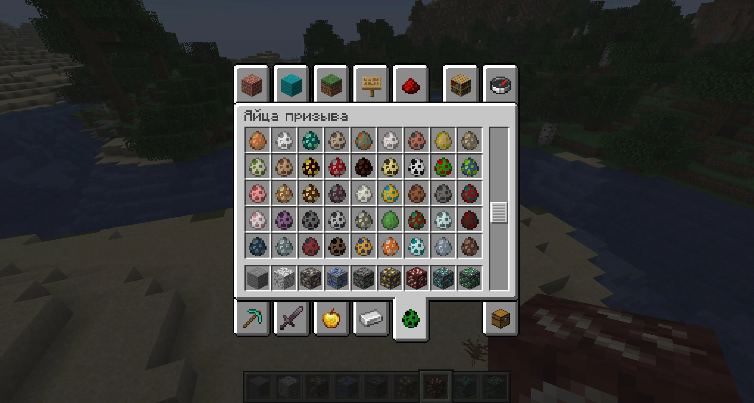 За счёт хорошей оптимизации иконки не перегружают интерфейс. Они выглядят аккуратно и читаются даже при большом количестве предметов в инвентаре. Это важно, когда нужно быстро подобрать нужное яйцо для теста поведения моба или для построения сцены.