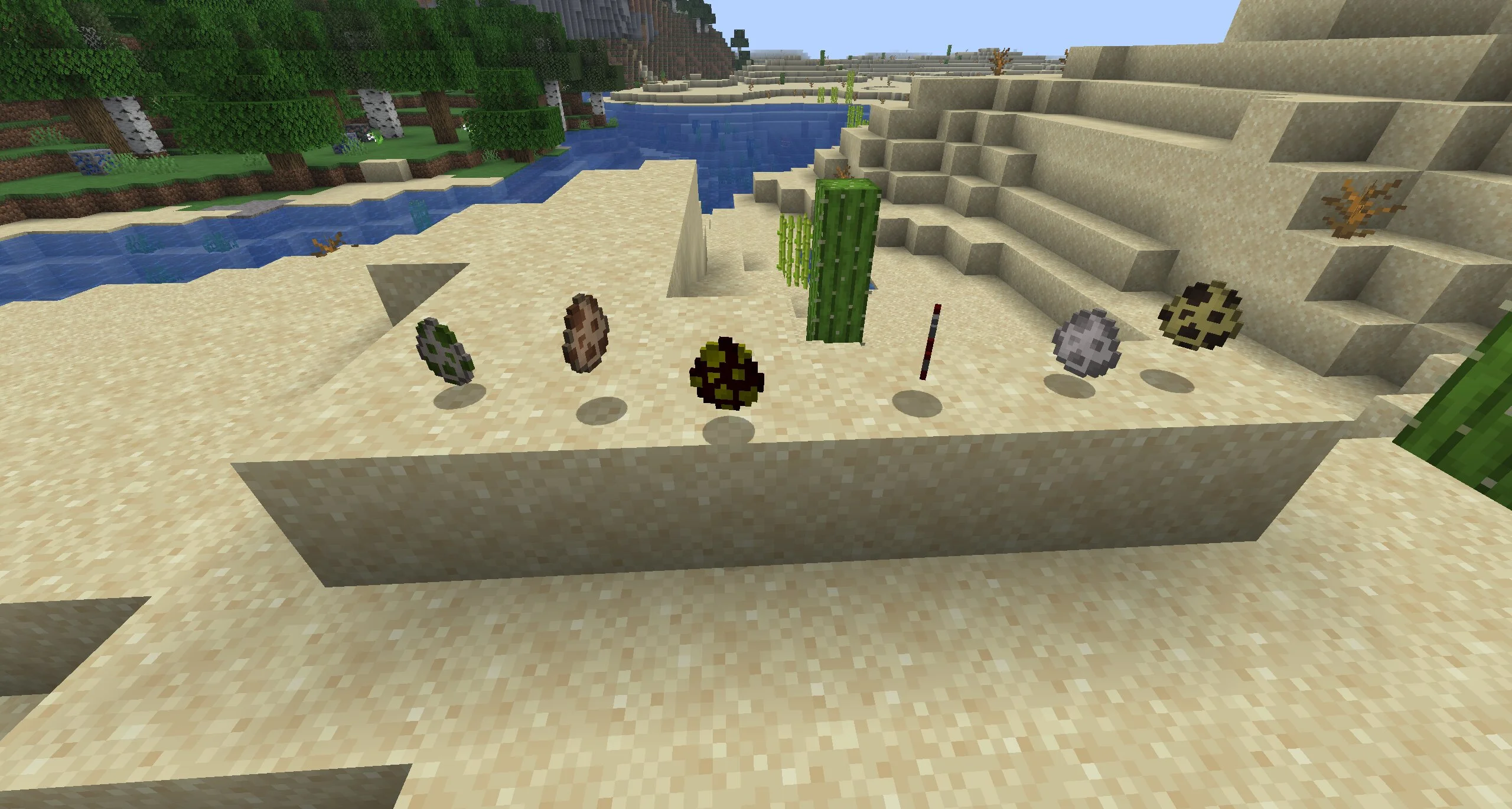 Ключевая особенность текстур Spawned Eggs — обновлённые иконки. Вместо абстрактной цветовой гаммы пользователь сразу видит понятный «портрет» будущего существа. Благодаря этому Стив не путается и не тратит время на подбор нужного яйца.